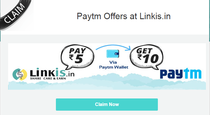- Once the payment has been made by the user, User will get Rs. 5 in his /her Linkis.in account and will also get Rs. 10 in his/her Paytm wallet