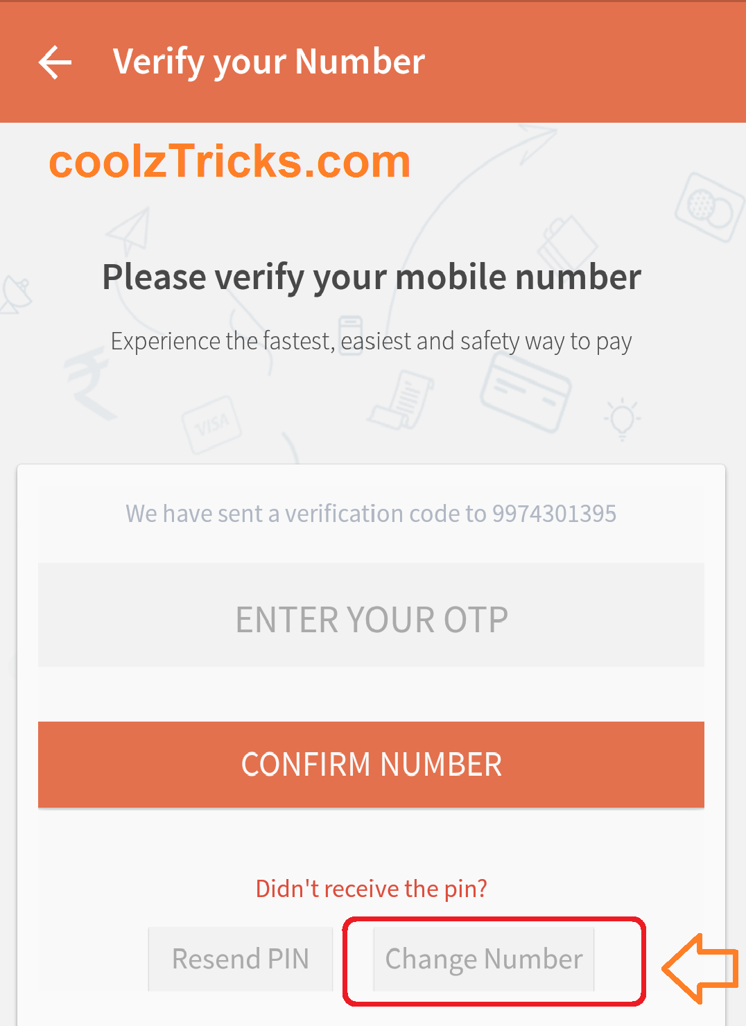 6. Now Once You Get OTP then Just Click On Change Mobile Number and Remove Last 2 digit of Your Mobile Number