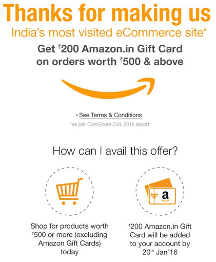 HERE ARE THE STEPS TO GET 200 / 300 Rs. GIFT CARD ON ORDERS ABOVE 500 RS. :~